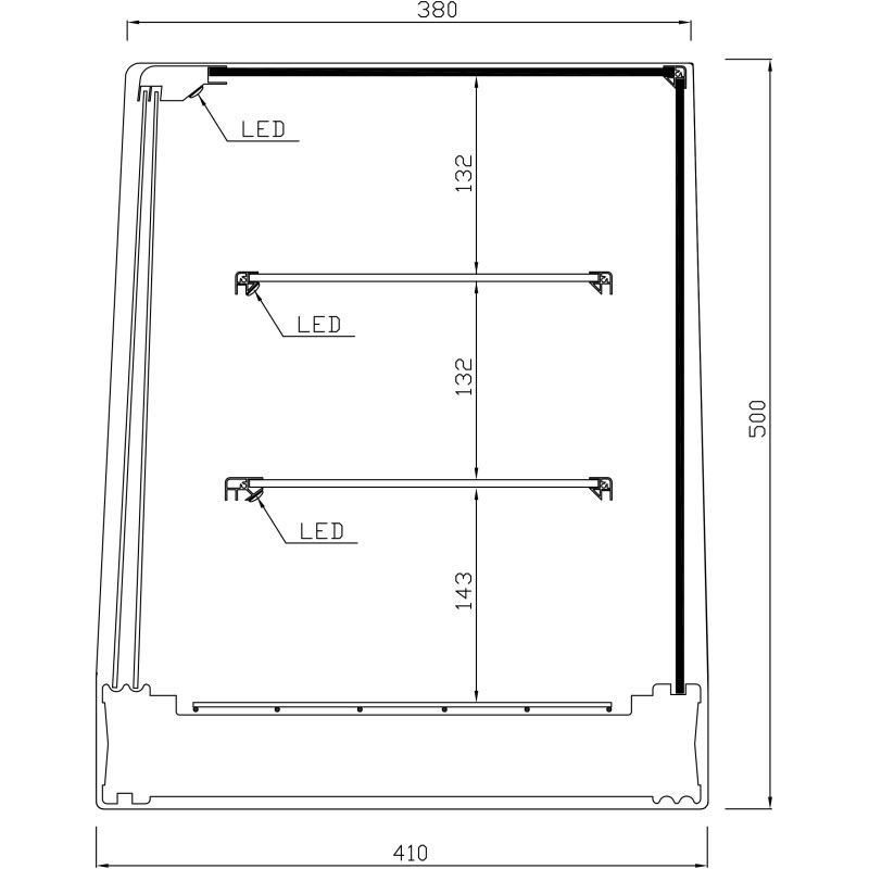 • LED lighting on each shelf.