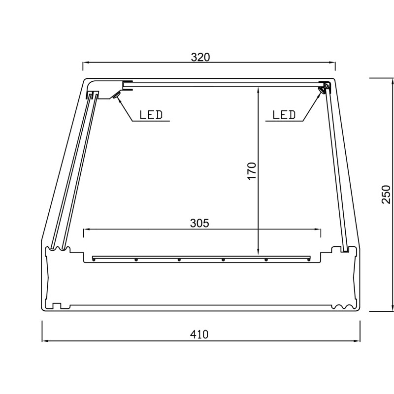 • 1/3 h40 gastronorm trays or 450x280 grills included in the display cabinet LED lighting.