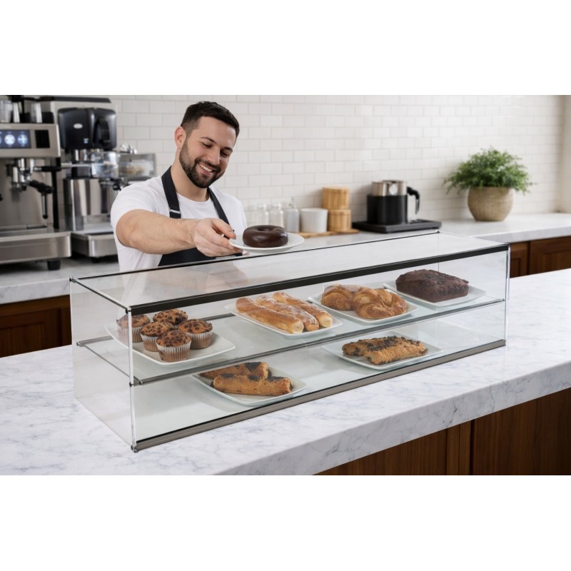 • Vitrine fabriquée sur une base en acier inoxydable AISI-304.